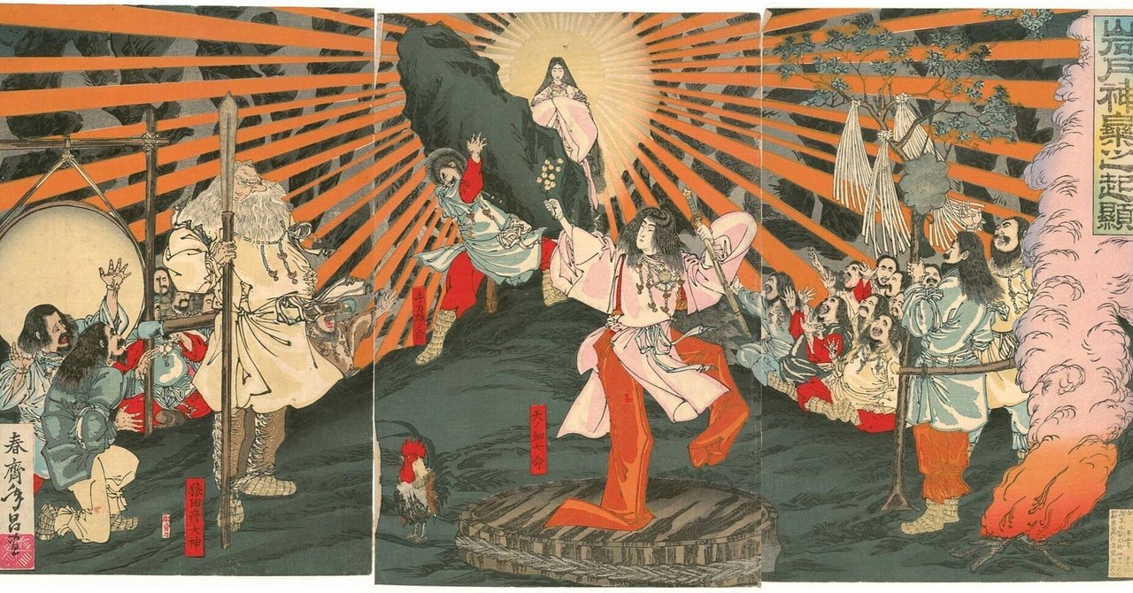 日食だとすると、黒い星は月を表します。”黒い星が~を見ている”は日食の観測を表現していると考えられます。